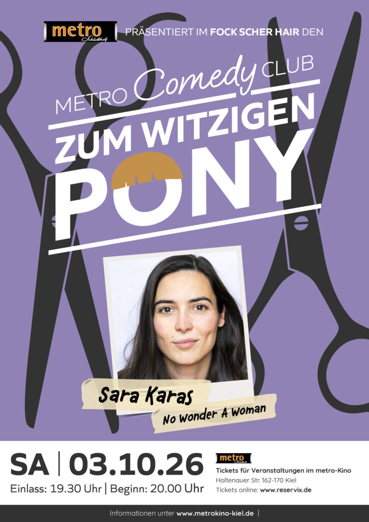 Am Samstag 03.10.26 um 20:00 Uhr /Einlass 19:30 Uhr kommt Sara Karas mit neuen Programm. Die Show hat freie Platzwahl und eine Kapazität von 90 Plätzen.